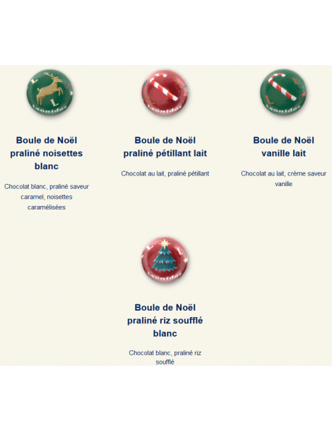 La boule en métal ROUGE ou VERTE (à préciser dans notes) est fabriquée dans le respect des traditions avec du 100% pur beurre de cacao et remplie de boules en chocolat Leonidas croquantes et savoureuses. Un éventail de goûts pour vous faire découvrir notre sélection.
