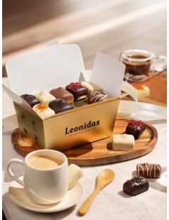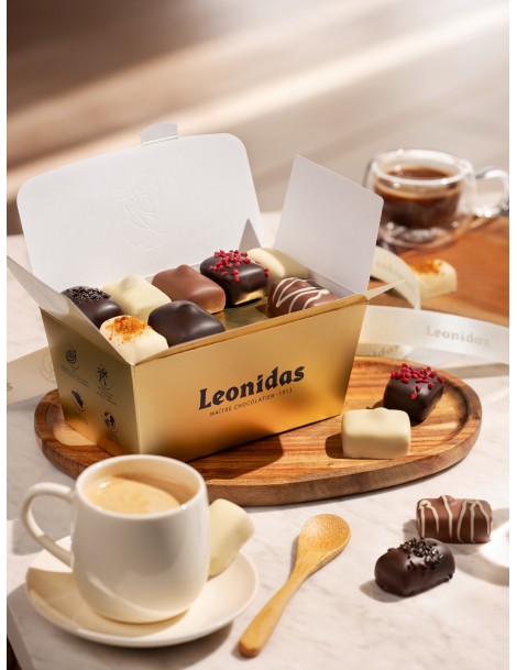 Chocolats fabriqués dans le respect des traditions avec 100% pur beurre de cacao et préparés par votre Chocolatier Leonidas.